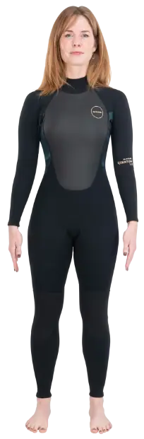 The Dakine Quantum is a well-performing wetsuit for women, and it’s a fantastic fit for a great variety of water sports. It comes with a back zip that makes it very easy to put on. At water temperatures of 41-50 °F, you can get the most out of this 5/4mm Dakine wetsuit.